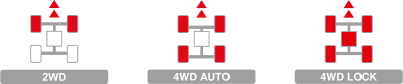 Режим 4WD AUTO: в этом режиме крутящий момент передается на все колеса, причем его распределение регулируется автоматически в зависимости от дорожных условий. Он обеспечивает устойчивость при сильном ветре, на шоссе или скользкой дороге.